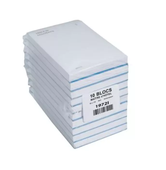 Ces blocs de commande Maître d'Hôtel sont spécialement conçus pour les professionnels de la restauration, offrant une solution efficace pour enregistrer les commandes des clients. Chaque bloc permet de créer une copie instantanée de chaque commande, assurant une communication fluide entre le personnel de service et la cuisine. Le format compact et le design pratique rendent ces blocs indispensables pour une gestion optimale des commandes.