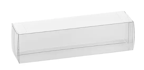 Lot de 10 boîtes pour macarons en PET transparent, format 19×5×5 cm, conçues pour présenter 6-8 macarons.