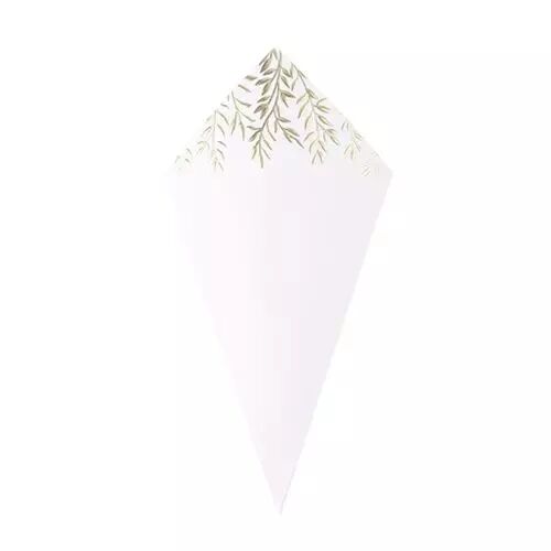 Accueil > ÉVÉNEMENTS > CONTENANTS / URNES > CONTENANTS CONFISERIES > 10 Cornets Jolis Brins Papier Blanc et Or 10,5x19,5cm