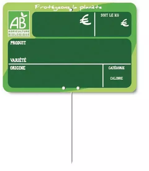Depuis le 1er juillet 2009 et l’entrée en vigueur des nouvelles règles de commercialisation de l’O.C.M. (Organisation Commune des Marchés) et le 29 janvier 2010, décret n° 2010-109 relatif à la taille des caractères de l’origine et des prix, l’affichage des fruits et des légumes frais, non transformés, vendus en vrac, comporte les mentions obligatoires suivantes :