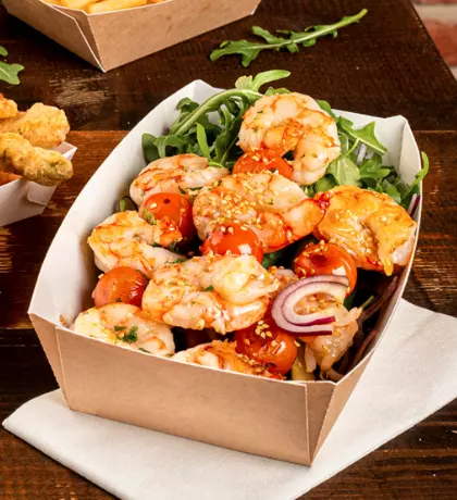 La référence **234.95** propose une boîte snack **THEPACK** conçue pour snacks ou tapas, fabriquée en carton nano‑micro de 220 g/m². Conditionnée par 100 unités