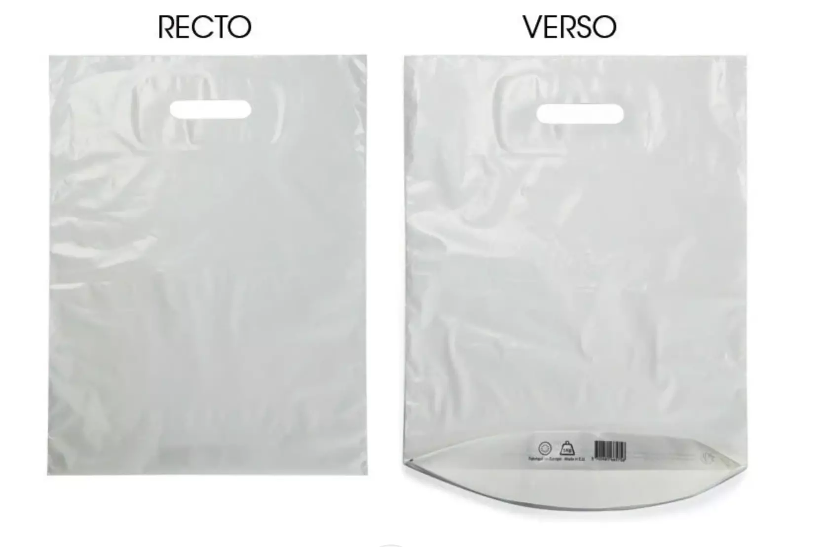 La référence **11115** désigne un sac plastique solide à poignées découpées, fabriqué **à 100 % à partir de PEBD recyclé** issu du circuit européen de recyclage. Conforme au décret n° 2015-992 du 17 août 2015, il est réutilisable et s’inscrit dans une démarche durable. Conditionné par **paquet de 100 unités** avec reconditionnement en paquets de 100 sous film protecteur. Épaisseur plastique confortable de **50 µm** pour une meilleure résistance.