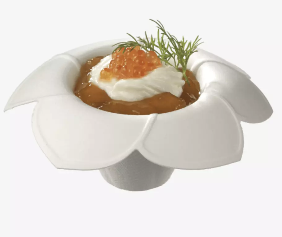 Adoptez l'élégance écoresponsable avec la Verrine Ipomée haute 45 ml, fabriquée en pulpe de canne. Inspirée d'une fleur trompette, sa silhouette raffinée sublime vos mises en bouche lors de cocktails, mariages ou réceptions. Sa résistance à l'humidité et à la chaleur en fait un incontournable pratique et esthétique, compatible micro-ondes et four.