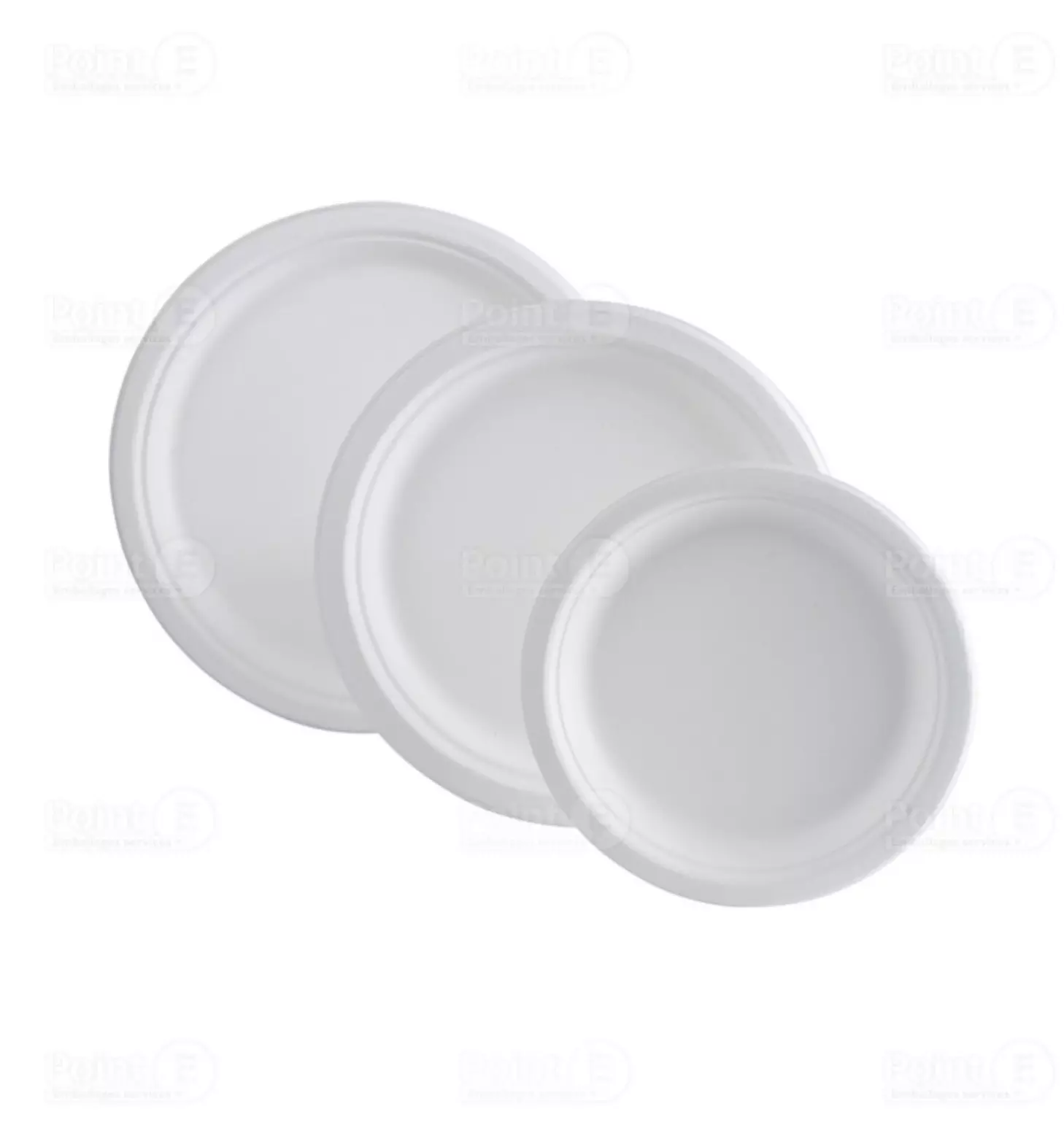Assiettes jetables en fibre végétale (bagasse), diamètre 180 mm, hauteur 18 mm, couleur blanche. Idéal pour usage unique et recyclage facile.