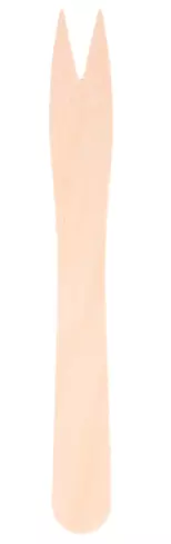 La référence **184.02** de García de Pou est une fourchette en bois de 8,5 cm, idéale pour frites ou bouchées, recyclable et compostable. Conditionnée en boîte de 1 000 unités.
