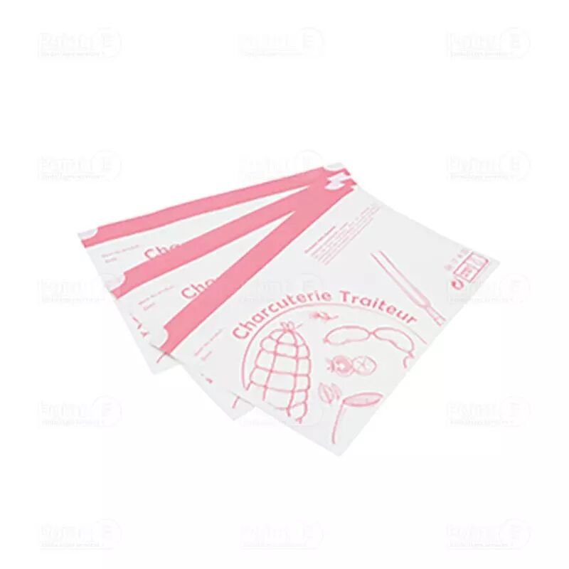 La pochette adhésive PEPOCIPE250CH est conçue pour les professionnels des métiers de bouche comme les charcuteries, traiteurs, et boucheries. Ce modèle est fabriqué en papier blanc 60 g/m² et présente une fermeture adhésive pour une utilisation rapide et hygiénique. Son format de 250 x 250 mm la rend idéale pour emballer les produits alimentaires de taille moyenne à grande.