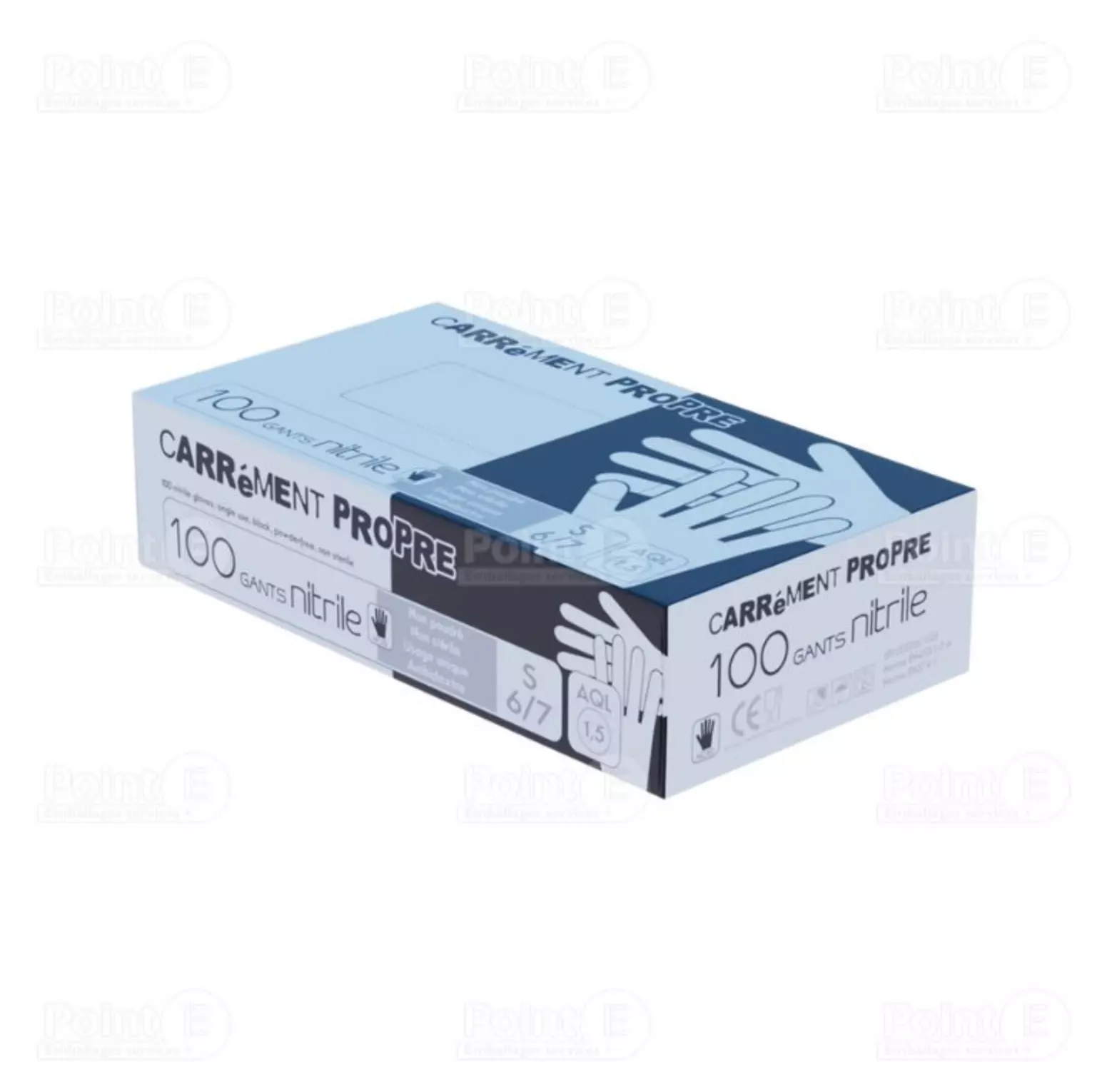 Carton de 1 000 gants nitrile non-poudrés, taille S (6/7), couleur noir, conditionnés en 10 boîtes de 100.