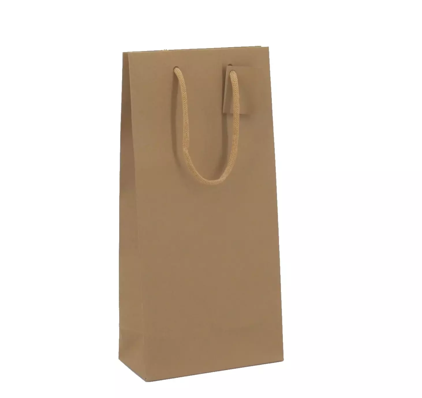 Le **Réf. 22003** est un **sac porte-bouteilles** conçu pour transporter jusqu’à deux bouteilles de manière élégante et résistante. Réalisé en kraft brun rigide (175 g/m²), il est doté de poignées en papier solides et comprend un encart insert message — parfait pour offrir ou pour un usage professionnel. Conditionné par 10 unités.