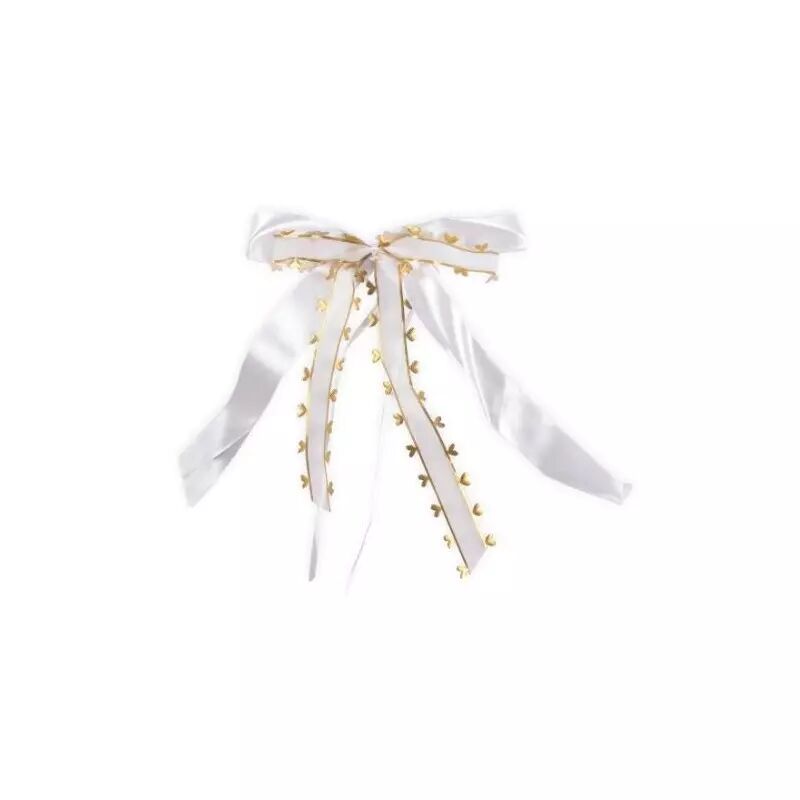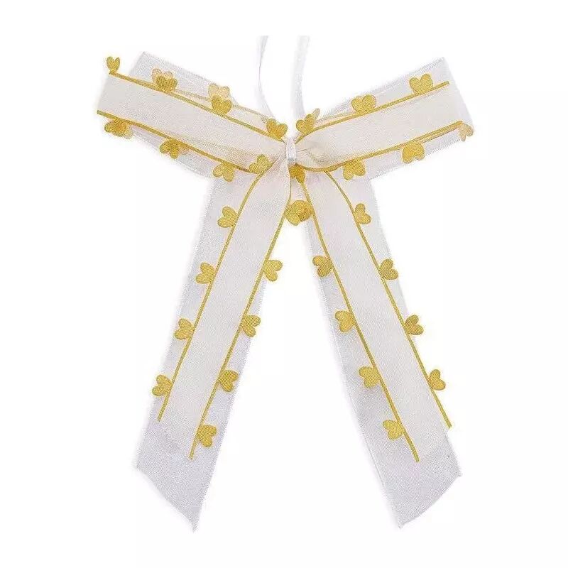Accueil > ÉVÉNEMENTS > RUBANS - TULLES - NOEUDS > NOEUDS > 12 Noeuds ruban blanc/ coeur OR 25.