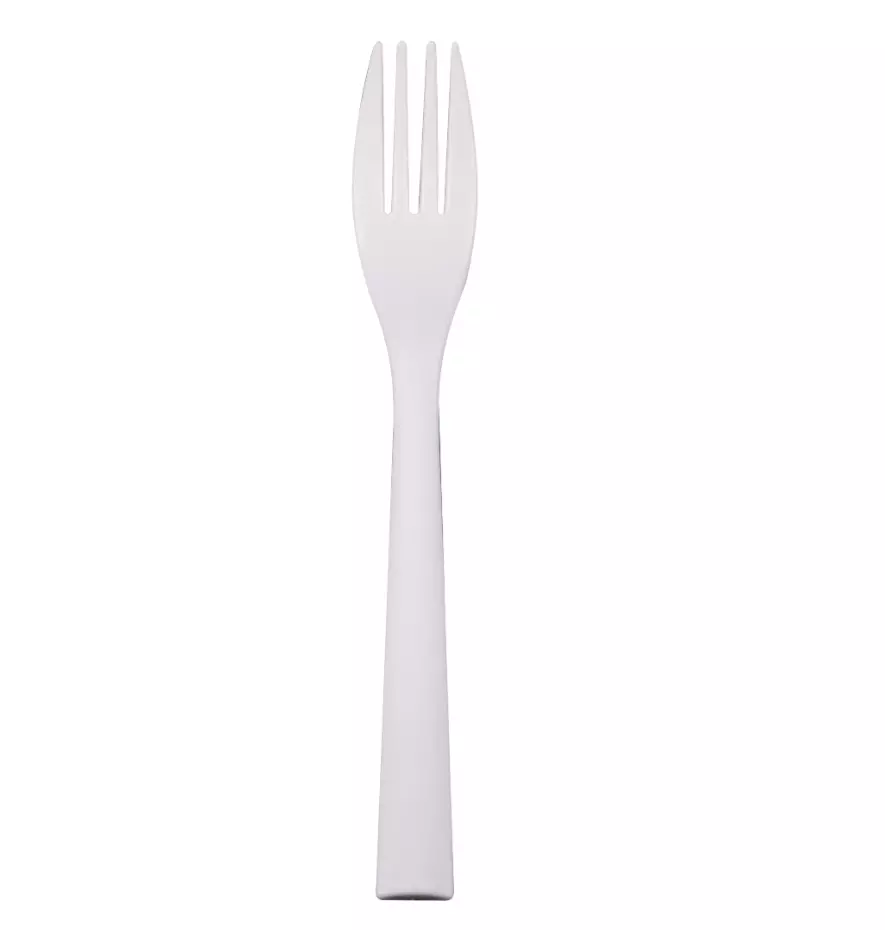 Fourchette réutilisable en polypropylène (PP) de 18 cm, incassable, couleur blanche. Conditionnements disponibles : paquets de 120 pièces. Parfaite pour usage professionnel répétitif.