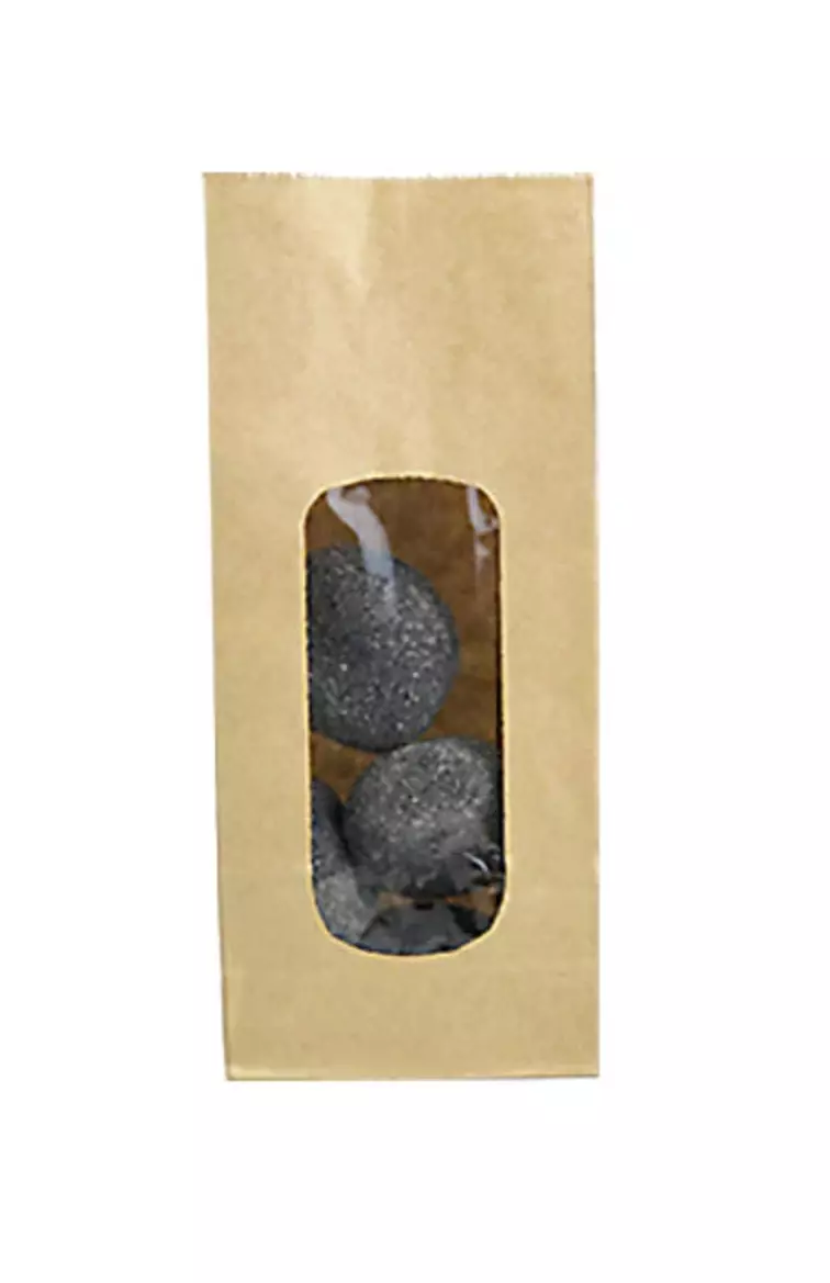 Carton de 1 200 sacs fond SOS en kraft brun lisse de 80 g/m², muni d’un film polypropylène 25 µ, avec fenêtre XL. Dimensions : 9 + 5 × 20,5 cm.