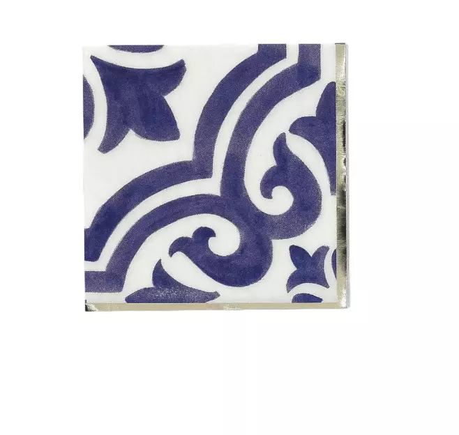 Accueil > ÉVÉNEMENTS > VAISSELLE & DÉCO DE TABLE > SERVIETTES > 20 Serviettes Cocktail Dolce Vita Papier Bleu Roi, Blanc et Or 24x24cm - 3 Plis