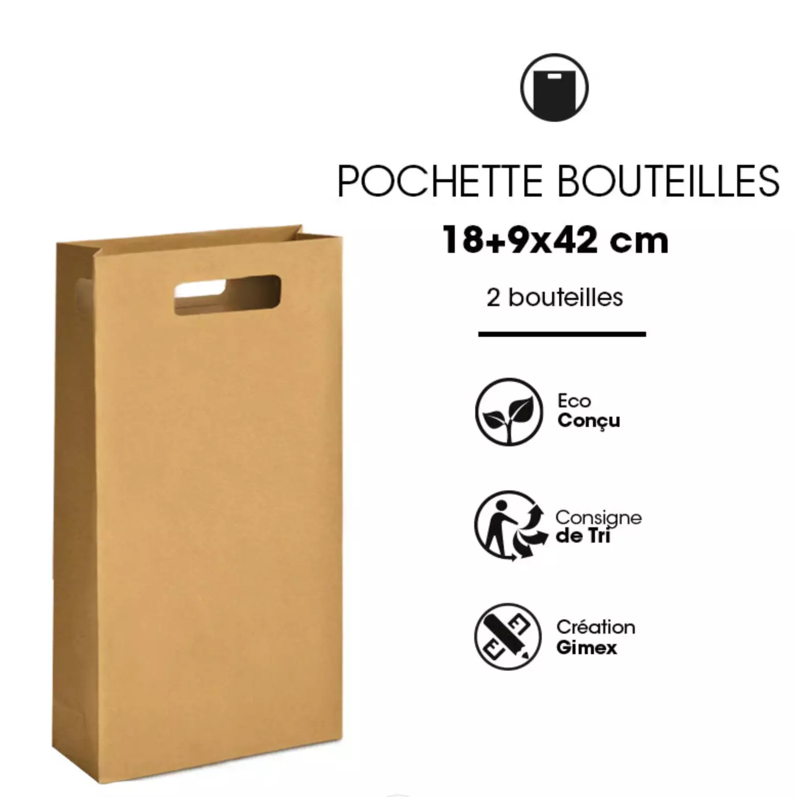 À utiliser pour conditionner deux bouteilles (vin, champagne, huile, etc.). Plier, insérer les bouteilles, transporter. Recycler après usage selon les consignes de tri papier.