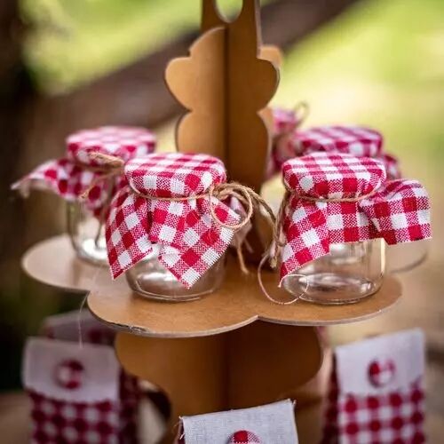 Le motif Vichy rouge et blanc est un classique de la décoration festive et champêtre. Associé au verre transparent et à la ficelle naturelle, il crée une atmosphère chaleureuse et conviviale qui s’intègre parfaitement dans les thèmes rustiques, guinguette ou vintage. Ces fioles deviennent ainsi un véritable élément décoratif pour vos tables ou vos buffets.