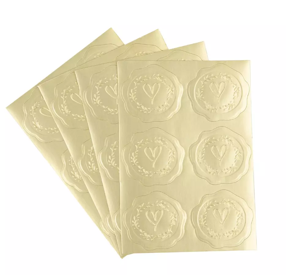 Fermez vos invitations, vos sacs cadeau ou décorez ce qu'il vous plaît. Nos stickers donneront un effet tampon de cire chic et raffiné. 4 planches.