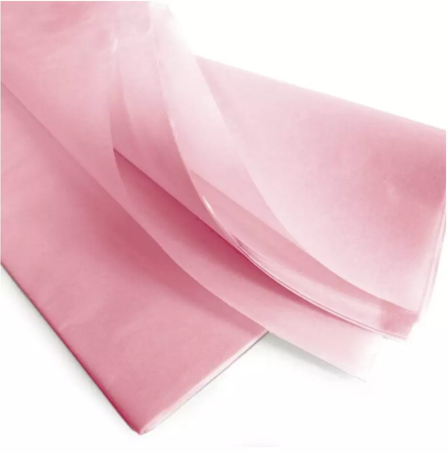 Papier de soie rose pastel, finition lisse et résistante à l’eau, idéal pour emballages cadeaux, décorations et compositions florales.