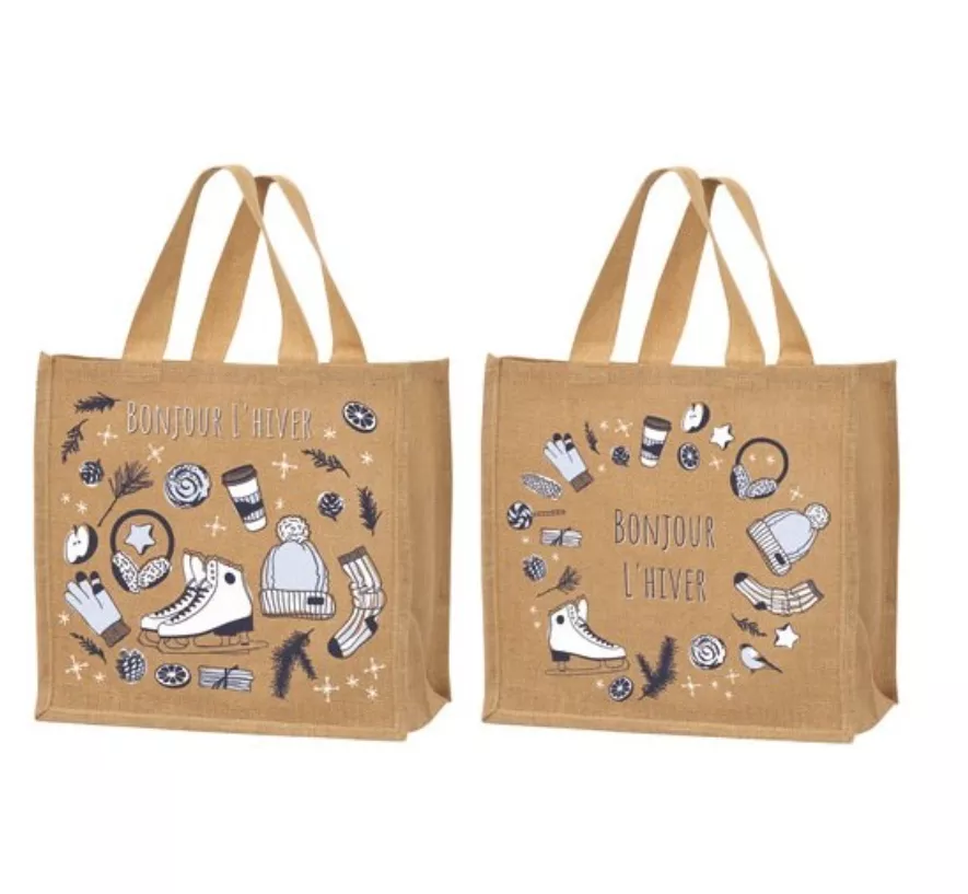 Découvrez le lot de 25 cabas en jute « Bonjour l’hiver », un sac réutilisable robuste et pratique, idéal pour vos clients ou pour vos activités commerciales. Confectionné en toile de jute naturelle avec poignées en coton, ce cabas allie solidité, style rustique et respect de l’environnement — parfait pour les courses, le shopping ou comme emballage cadeau original.