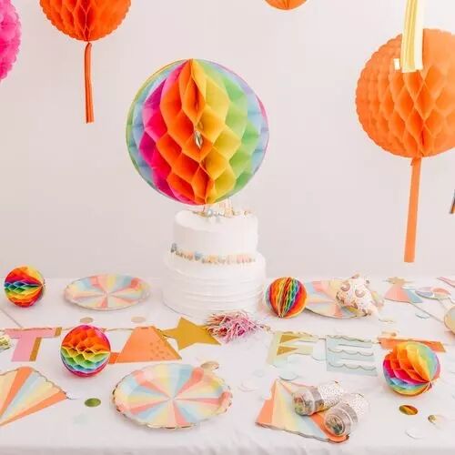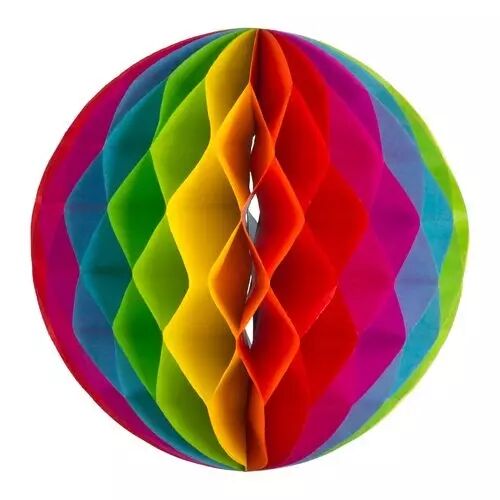 Accueil > ÉVÉNEMENTS > DÉCORATIONS > DÉCO PAPIER ALVÉOLÉ > 3 BOULES ALVEOLEES ARC EN CIEL 25/20/15 CM