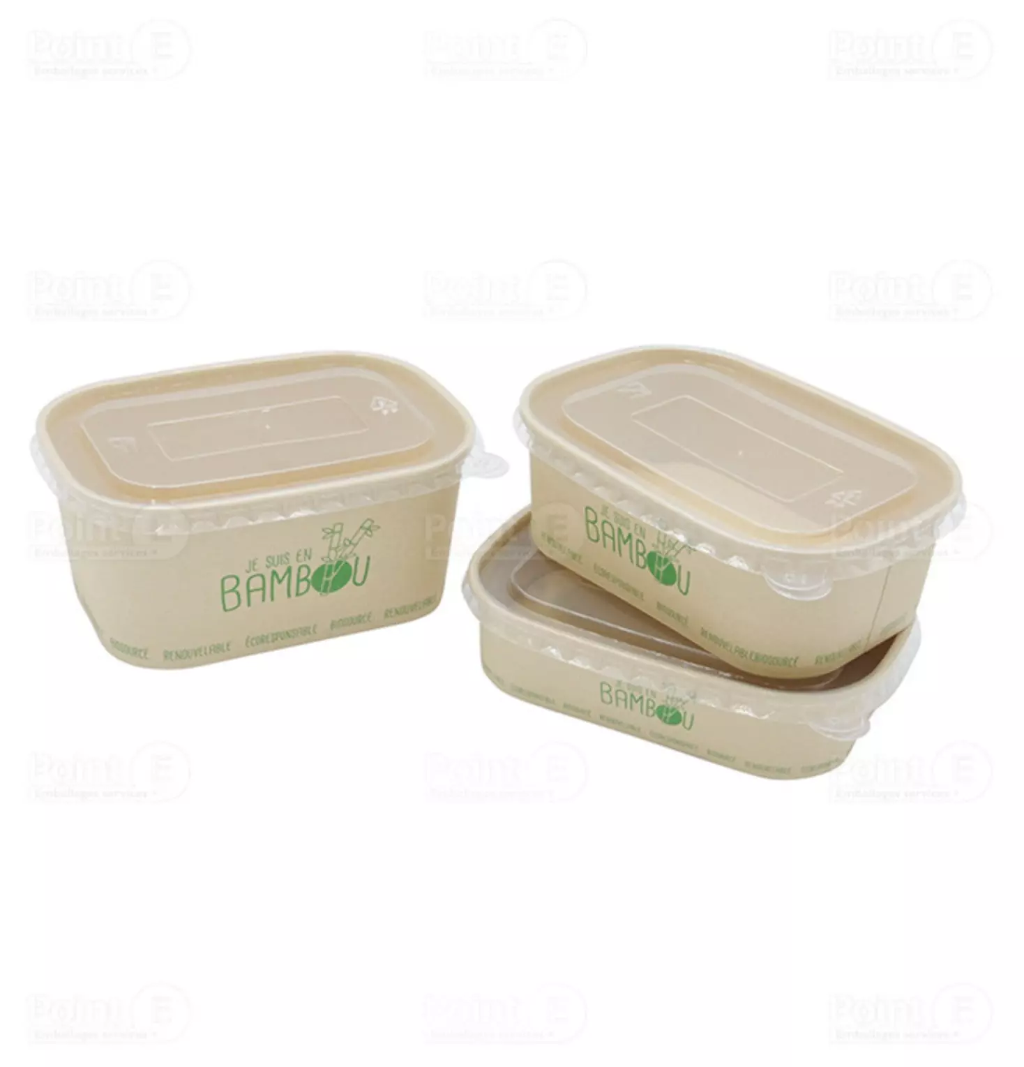 Poser le couvercle sur la barquette bambou correspondante (170 × 120 mm) et presser les bords pour obturation. Ces couvercles sont conçus pour usage alimentaire. Recyclez selon les consignes PP locales. Pour des plats très chauds, vérifier la compatibilité à haute température.