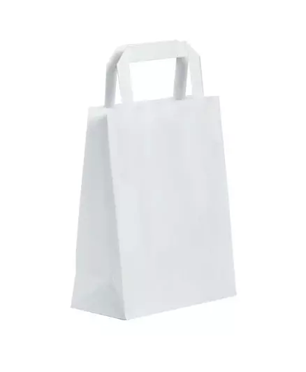 La référence **20134C1** désigne un sac kraft blanc sobre et raffiné, doté de poignées plates pour un transport confortable. Sa fabrication en papier kraft lisse de 70 g/m² lui confère solidité et esthétique. Il est conditionné par 300 unités protégé par paquets de 50 sous film plastique