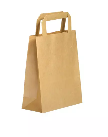 Carton de 300 sacs kraft recyclé brun avec poignées plates, dimensions 18+8 × 22 cm, papier épais 70 g/m².