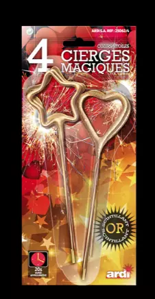 Le cierge magique est un incontournable accessoire de vos évènements festifs. Rendez ces instants flamboyants avec nos cierges magiques cœurs et étoiles ! Ces cierges magiques seront un vrai feu d'artifice pour accompagner votre gâteau d'anniversaire, bûche de Noël ou le dessert le jour de la Saint Valentin. Les étincelles crépitantes de nos cierges lumineux vous plongeront instantanément dans une ambiance conviviale et festive.