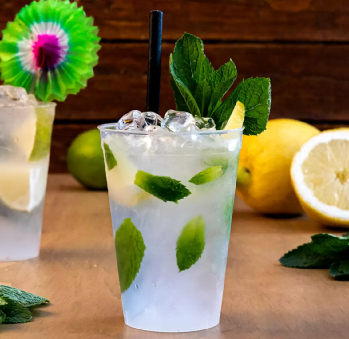 Verre réutilisable en polypropylène transparent de capacité 180 ml, modèle empilable, idéal pour bars, événements et restauration, robuste et lavable.