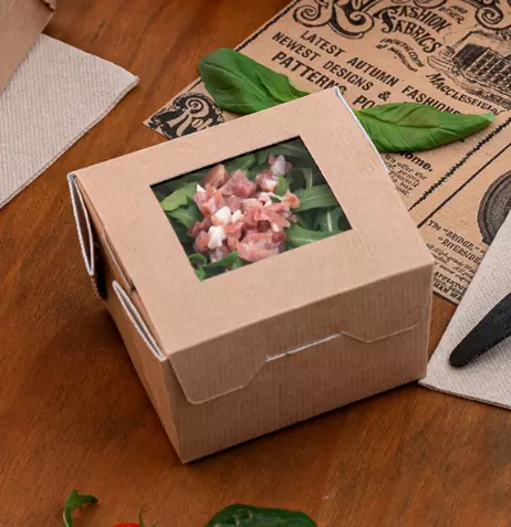 Utiliser à froid ou tiède, éviter les liquides très chauds ou sauces très grasses si non prévu. Mettre en place la fenêtre vers le haut pour visibilité. Recycler le carton et séparer le film OPP si possible selon les filières locales. Stocker à l’abri de l’humidité pour préserver la boîte.