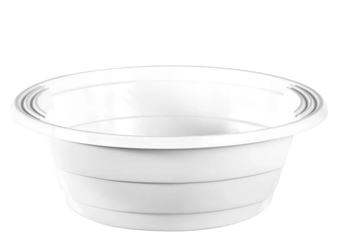 Bol en polypropylène blanc, capacité de **670 cc**, diamètre de **16 cm** sur une hauteur de **5,6 cm**. Conditionné en paquet de **50 pièces**