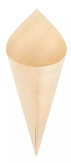 Mini cônes en écorce de pin naturelle, longueur 17 cm, conditionnés en boîte de 50. Parfait pour présentation d’amuse-bouches.