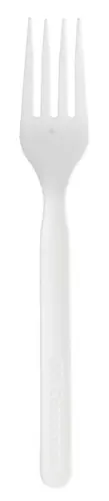 Boîte de 50 fourchettes compostables en CPLA (plastique d’origine végétale), longueur 17 cm.