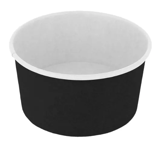 Boîte de 50 pots en carton noir, contenance 150 ml, dimensions Ø8,5×4,5 cm.