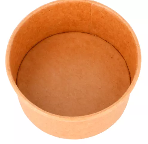 Boîte de 50 pots jetables en carton brun, 90 ml, Ø 7,2×4 cm.