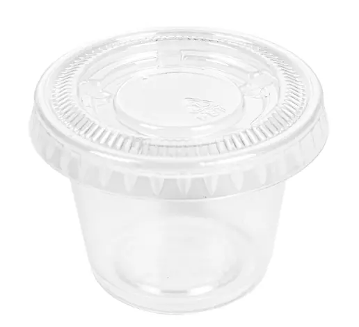 La référence **215.06** est un petit pot transparent en PP de 30 ml, idéal pour condiments, sauces ou échantillons. (50 pots + 50 couvercles)