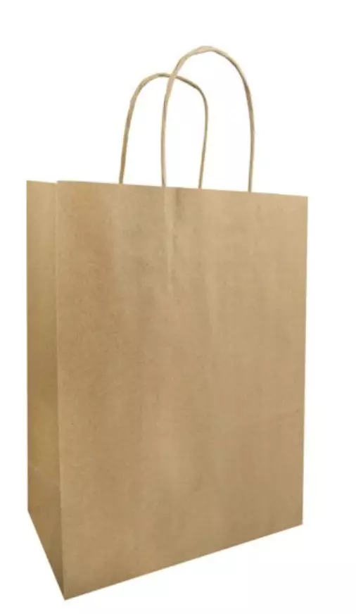 Sac kraft naturel avec poignées torsadées, idéal pour bouteilles et emballages cadeaux raffinés.