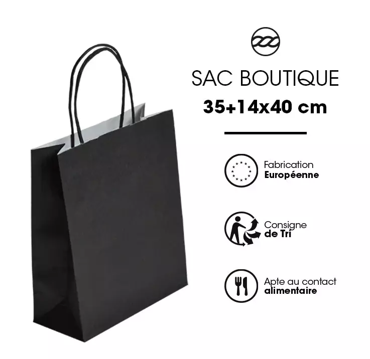 Le sac papier GI21278 est une solution élégante, pratique et écologique pour l'emballage et le transport de produits alimentaires ou non alimentaires. Avec ses dimensions généreuses de 35 x 14 x 40 cm et sa finitions noire mate, il assure un transport sécurisé tout en offrant un aspect raffiné. Fabriqué en papier résistant de 100 g/m², il est doté de poignées torsadées solides pour une manipulation facile. Conditionné par lot de 50, il convient aussi bien aux commerces de détail qu’aux restaurateurs.