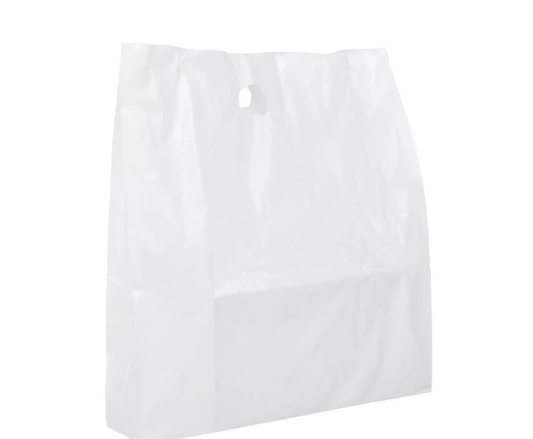 La référence **12107C1** correspond à des sacs en **PEHD blanc** dotés de poignées découpées. Fabriqués pour être **réutilisables** et **100 % recyclables**, ils sont livrés en film protecteur par paquets de 50.