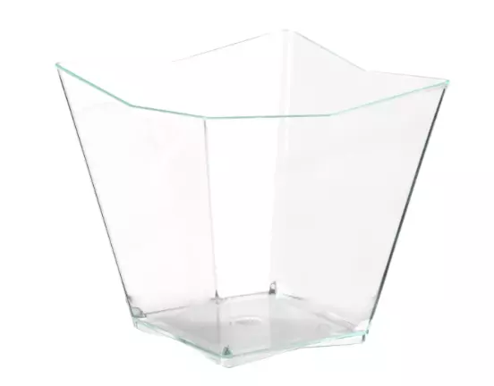 Boîte de 500 récipients « Cristal Diamant » réutilisables en plastique injecté, contenance 120 cc, transparence cristal pour sublimer vos créations gastronomiques.