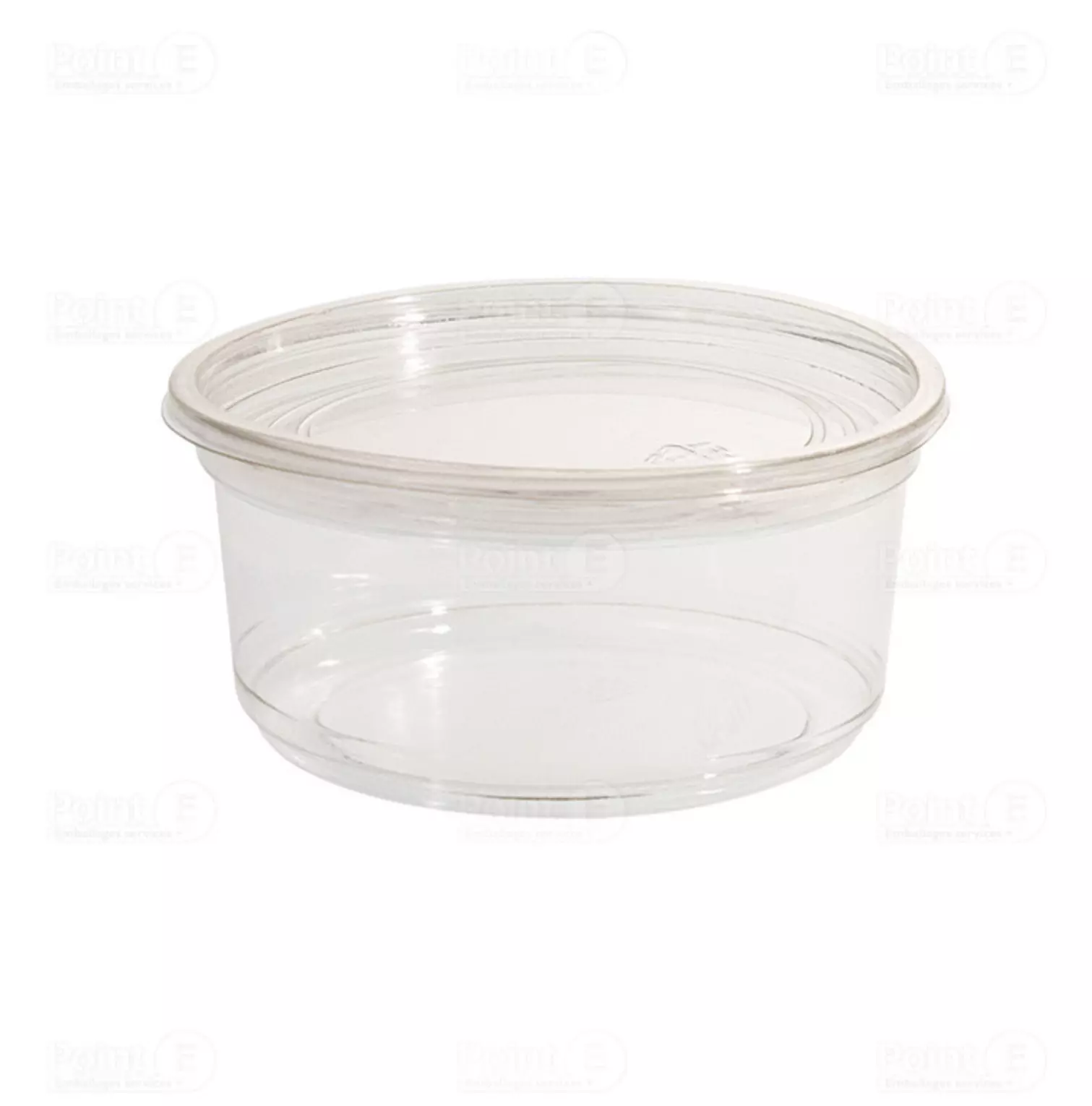 Carton de 500 pots transparents en PET de 475 ml, format Ø 116,5 × 80 mm, conditionnés en sachets de 50 (10 sachets).