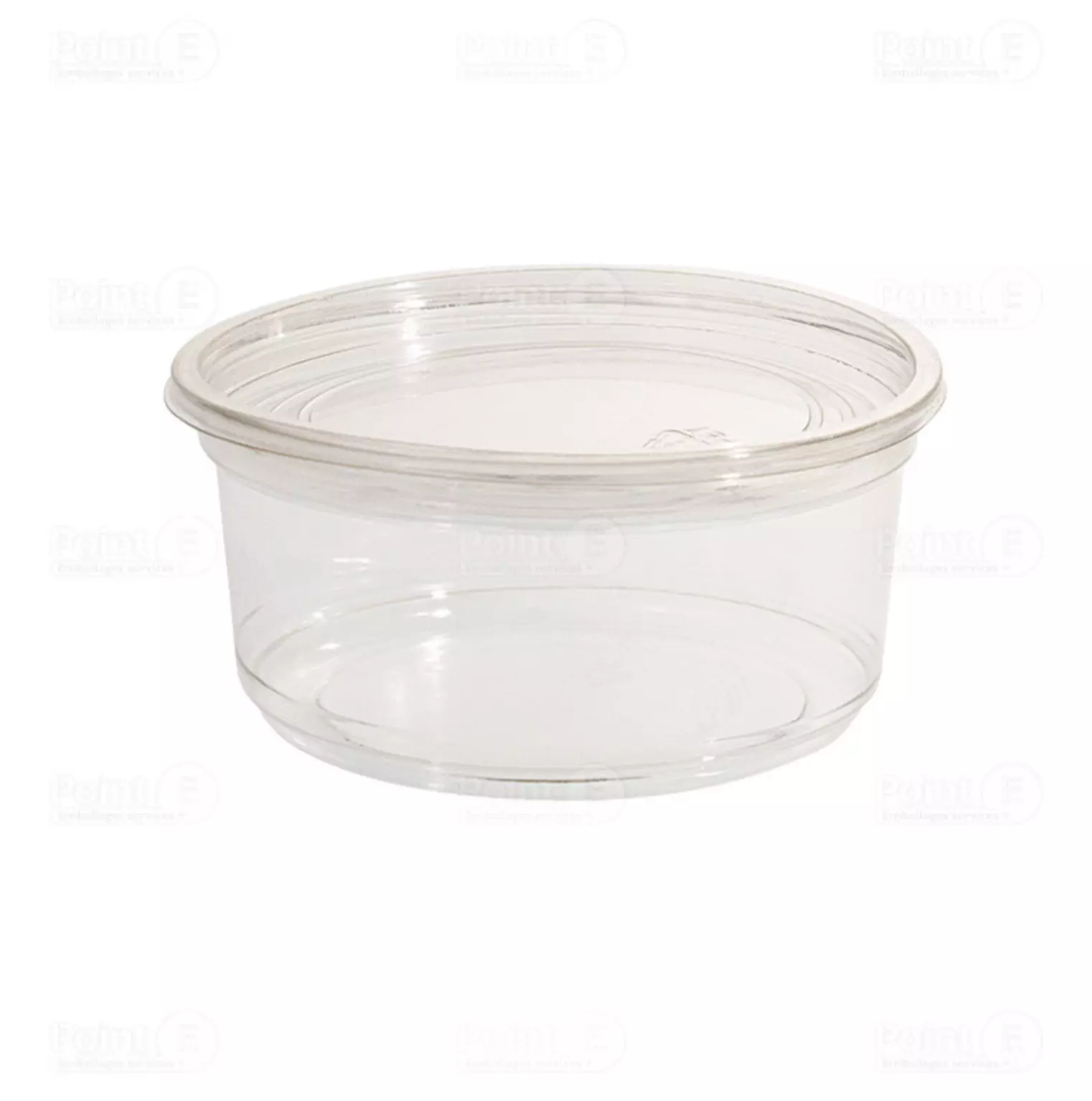 Carton de 500 pots transparents en PET, contenance 950 ml, dimensions Ø 116,5 × 145 mm, adaptés aux ananas