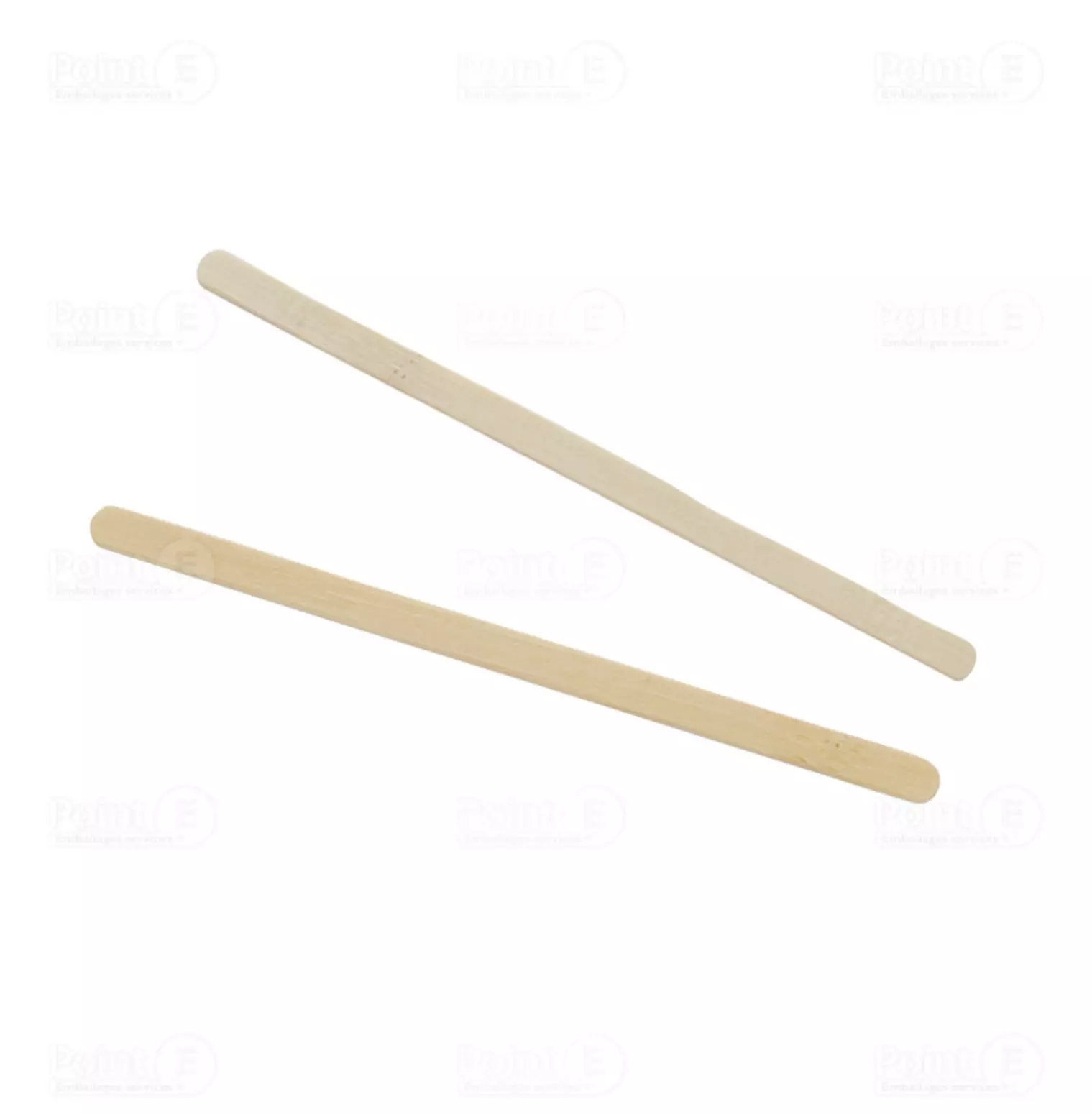 Lot d’agitateurs en bambou naturel de 140 mm de long, coloris beige. Conditionnés en sachets de 500, soit 5 000 unités par colis.