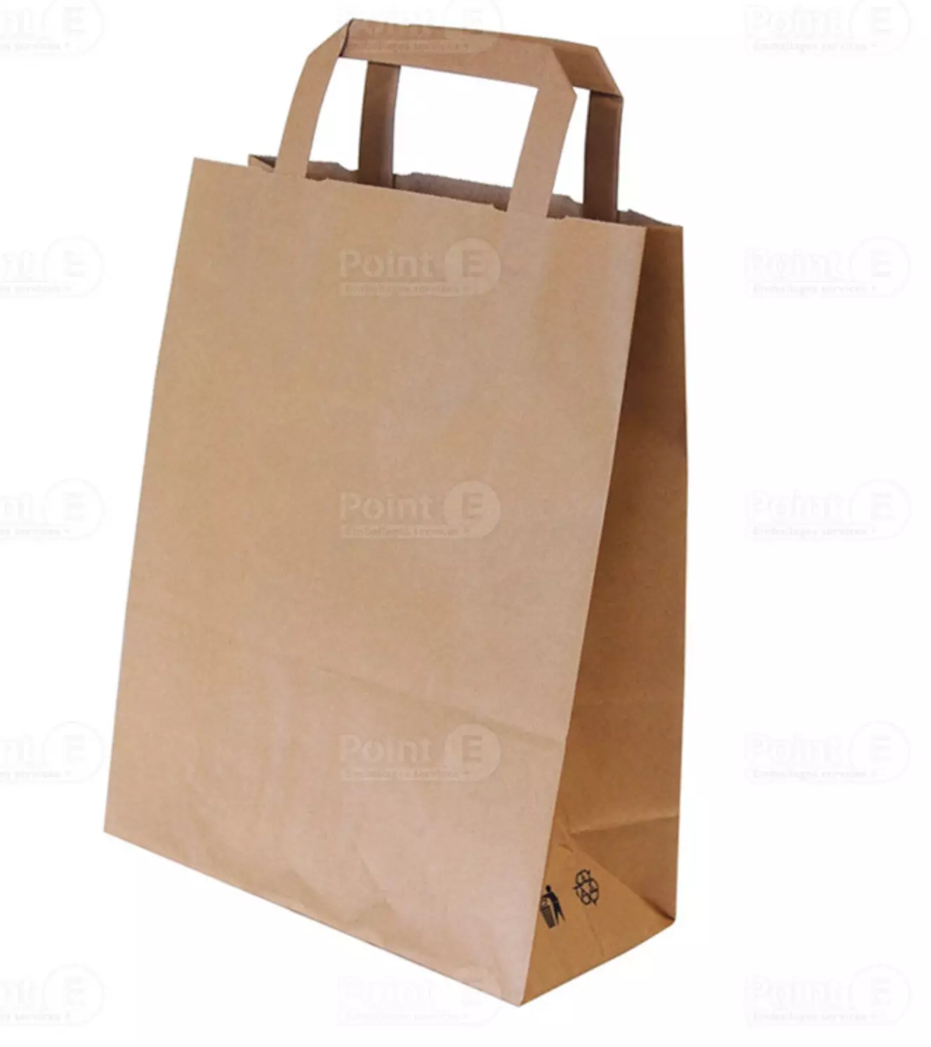 Sac cabas en papier kraft brun, dimensions 220+100 × 280 mm, grammage 70 g/m², conditionné par 250 unités, avec sous-conditionnement en 5 sachets de 50.