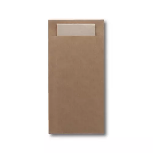 Cette pochette à couverts en papier kraft brun est livrée avec une serviette en ouate 2 plis de qualité professionnelle. Idéale pour une mise en place rapide, elle garantit à la fois hygiène, praticité et élégance naturelle.