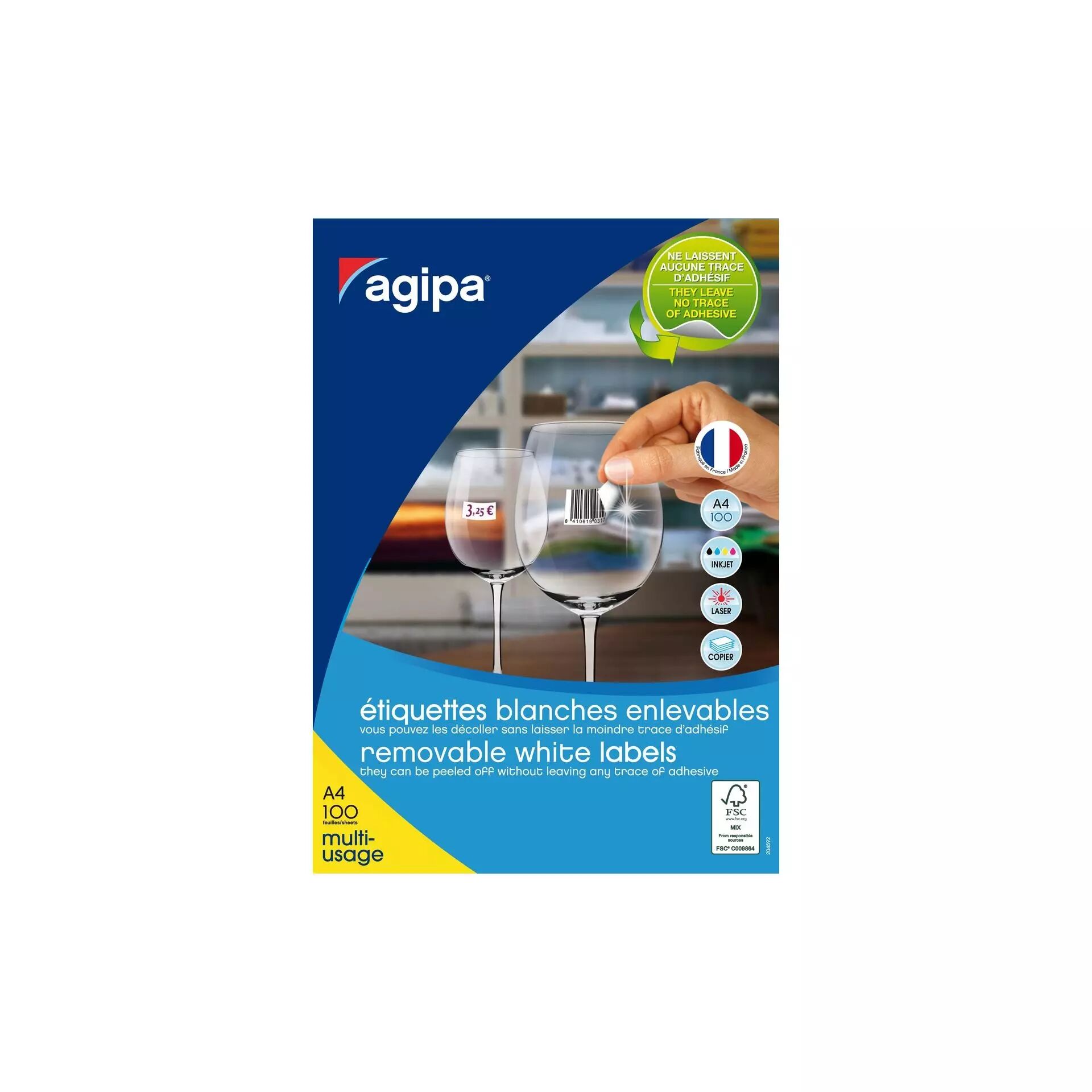 COMPATIBLES : Les étiquettes à imprimer Apli Agipa sont compatibles avec les impressions laser, copieur et jet d’encre. Elles sont réalisées en France avec toute l’expérience d’Apli.