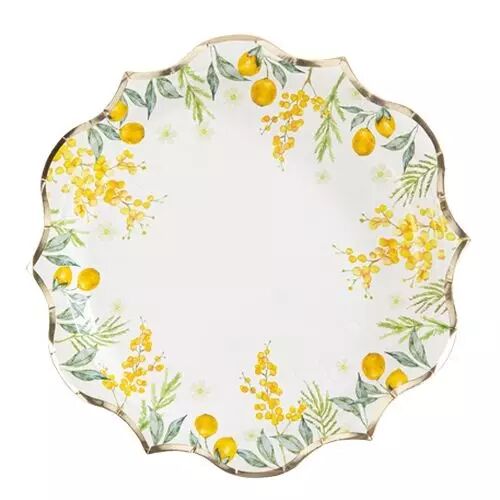 Accueil > ÉVÉNEMENTS > VAISSELLE & DÉCO DE TABLE > ASSIETTES > 8 Assiettes Mimosa Citrons Carton Feuillages et Or 23cm