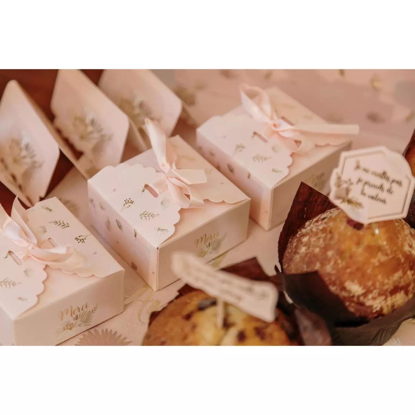 8 Contenants Festonnés Boho Papier Merci Blush et Or 7x7x3,5cm + Ruban Satin Blush