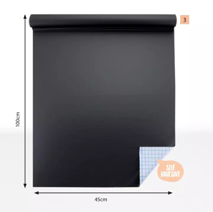 Rouleau autocollant tableau noir amovible de 100 × 45 cm, auto-adhésif, facile à découper, parfait pour créer des surfaces d’écriture personnalisées sur tout support.
