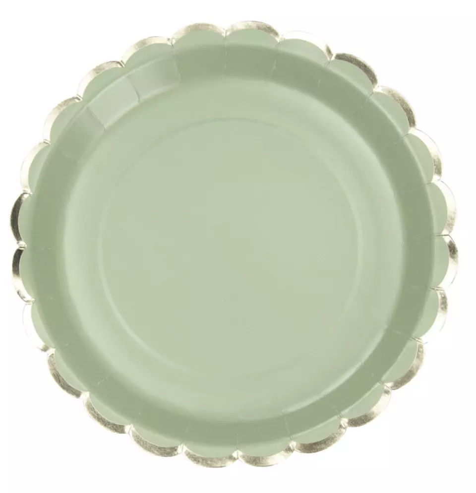 ASSIETTES FESTONNEES 23CM VERT SAUGE ET OR X 8