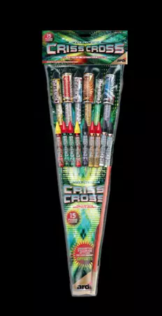 Assortiment de 15 fusées CRISS CROSS®, avec effets variés (étoiles, clignotants, poisson argenté, etc.). Calibres 16 mm, 20 mm et 30 mm pour des hauteurs de tir jusqu’à 20 m. Idéal pour célébrations en extérieur.