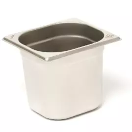 Bac gastronorme en acier inoxydable, dimensions 16,2 × 17,6 × 15 cm, capacité 2,2 L, coloris argenté. Idéal pour usage professionnel en cuisine, buffet, ou service traiteur.